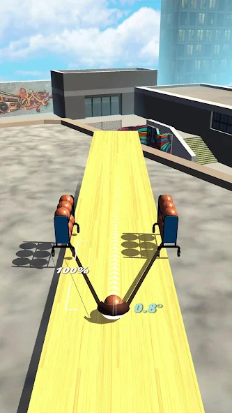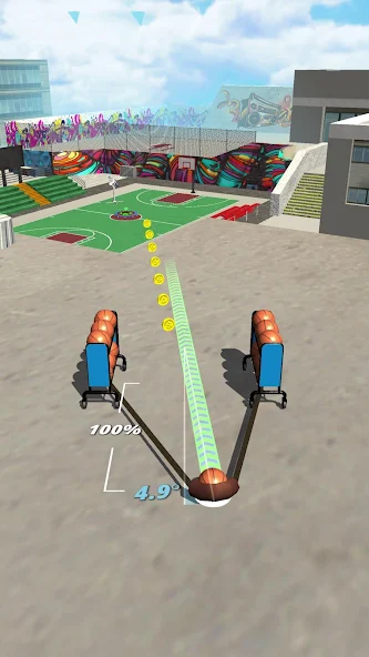 2、通过拖动弹弓调整力度与方向,控制篮球的弹射轨迹。