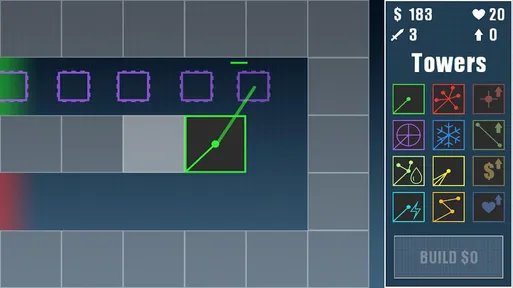 激光塔防御(Laser TD)是一款策略塔防玩法的手游,这款游戏采用简约的2D画面制作,在这里玩家可以根据敌人的情况和地形,在不同类型的防御塔中自由选择和搭配,放置在地图中就能自动攻击来袭的敌人,随着关卡推进,敌人种类与攻击波次逐渐增加,需要合理布置防御战线才能保卫家园。