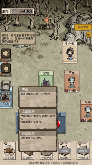 诡币:核心获取方式是生存者在诡矿中采集,每日开局建议凑够 10 个诡币作为基础资源,用于野外区域随机获取其他各类资源。