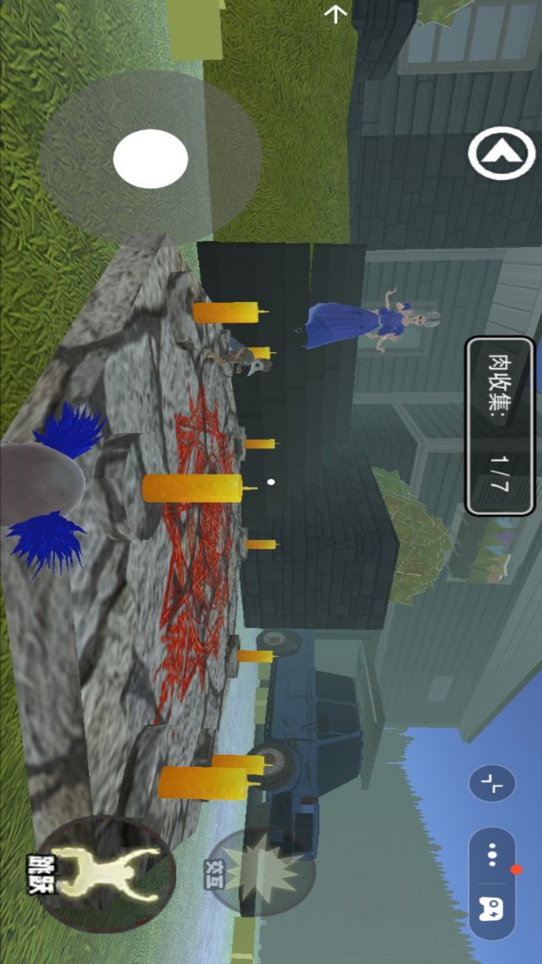 2、移动自己的角色,需要去收集肉;