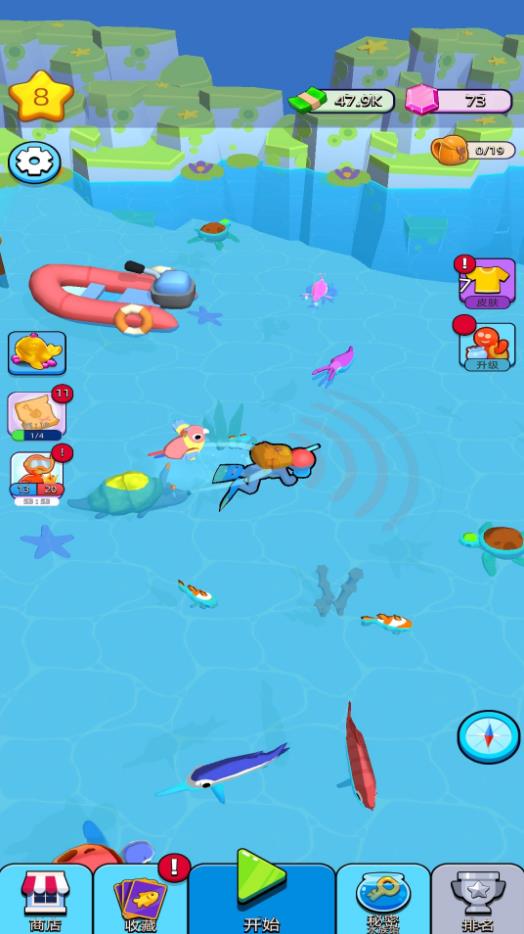 2、在深海区域追踪带有金币标识的海洋生物,跟随其轨迹移动,获取金币奖励,同时留意大型海洋生物的活动区域,探索可能的隐藏资源点。