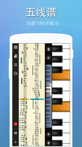 - 内置10种高品质键盘音效:钢琴、八音盒、管风琴、钢丝弦吉他、贝斯合成器、萨克斯、弦乐合奏、罗兹电钢琴、电子琴等