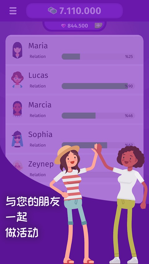 点击右上角/菜单中的“赞”按钮。在那里你可以花钱进行社交。另外,如果您想与某人约会或与某人见面以建立关系,请务必进行社交活动。
