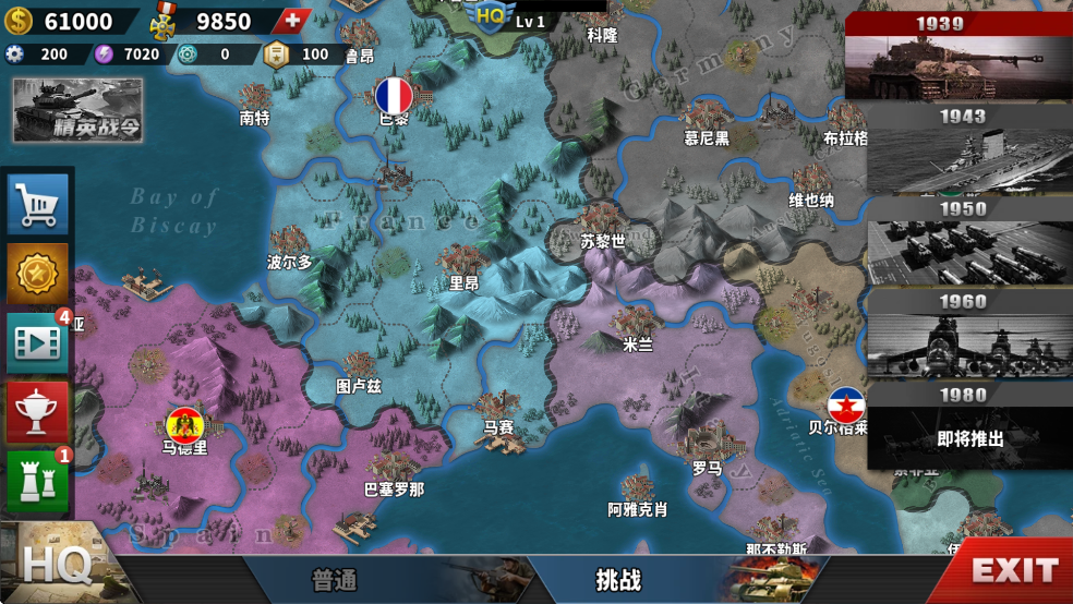 在指挥部中组建属于你的军队,无论是演习还是军团战役都需要在战场上布置你的军队,合理的布置军队和使用将领是这些战役获胜的关键,共40个挑战行动将考验你指挥技巧的极限。