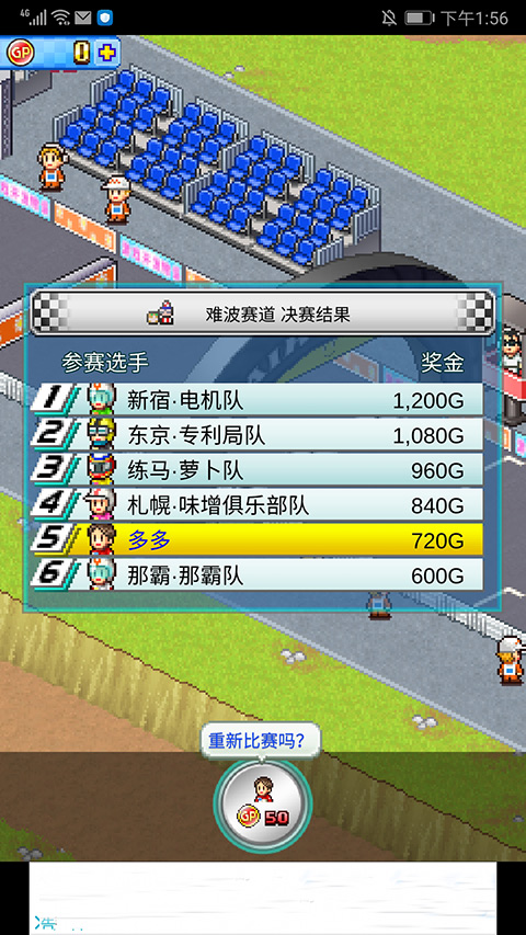 15、训练完成后,可以看到赛车手所提升的属性,游戏中玩家需要不断制造、升级性能更好的车以及训练赛车的能力,从而使在赛车比赛中可以获得更好的名次,收获更多的奖金,以上就是冲刺赛车物语2的玩法了。