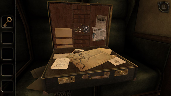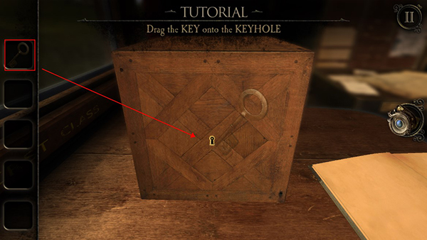 2、首个场景在一个车厢内,玩家需要先查阅桌子上的日记本,然后火车会驶入一段黑暗的隧道,之后桌子上会出现一个木盒子,双击以靠近木盒子,可以拾取一个钥匙。