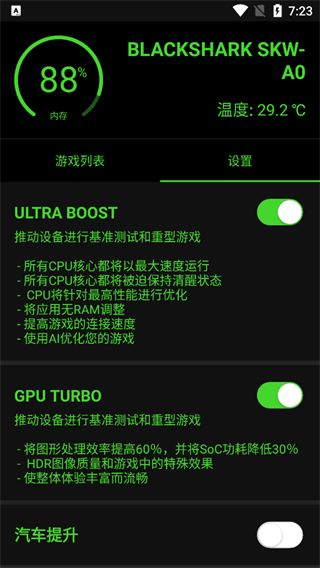 3、进入设置界面,将【ULTRA BOOST】与【GPU TURBO】两项功能全部开启。