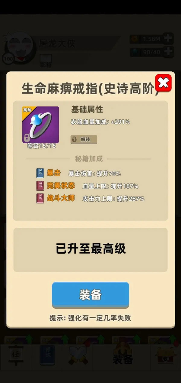 ②打过了大侠关卡后建议挂大侠关卡,不一定要通关,打过第一关就行,剩下的交给跳关。
