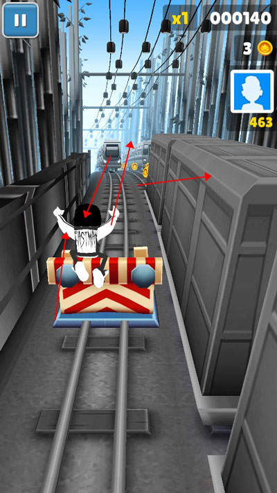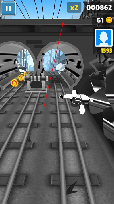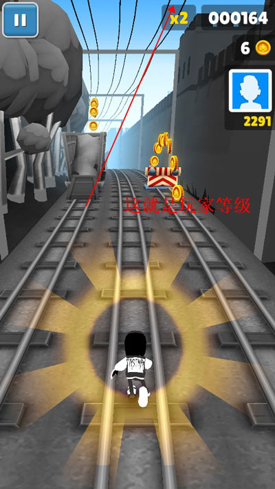 在有路障的情况下,掌握好跳起的落点,在路障的上方下拉,使角色落在路障上可以再次跳起,然后就可以跳上火车顶了,相信大家都遇到过有个收集物品在火车上,却拿不到而错过的尴尬,掌握了这个技巧,问题迎刃而解。