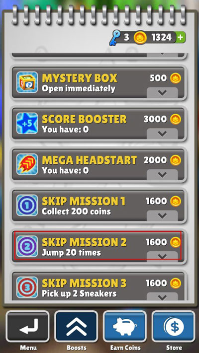 3、地铁跑酷很多道具都会对跳跃产生影响、比如跑鞋、助推器、跳跃道具等、特别是跳跃道具、可以跳到上方吃到很多金币、但是下落时、需要及时变更方向。