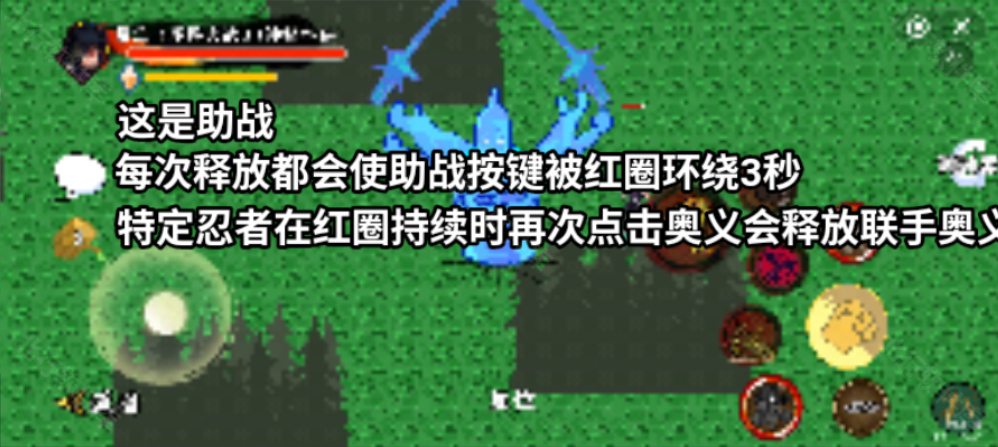 3、每次释放助战都会使助战按键被红圈环绕3秒,特定忍者在红圈持续时再次点击奥义会释放联手奥义