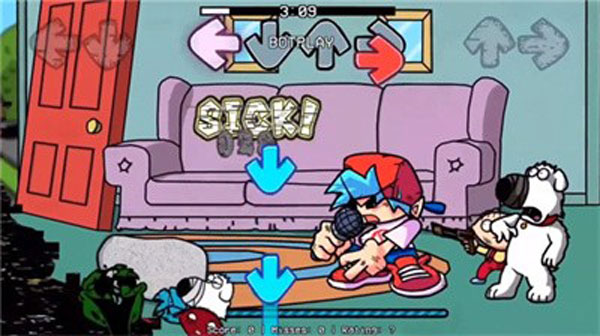 fnf错误化恶搞之家是一款由玩家创作的自制模组,基于经典动画“恶搞之家”进行改编,让玩家能够与恶搞之家中的角色展开音乐对决,它延续了原版FNF的核心机制,依旧通过按键触发音符来获取分数。而在角色设计方面,对人物形象进行了独特的错误化改造,使他们呈现出更加奇特的效果,游戏整体画风也更偏向于暗黑风格,营造出一种诡异且与众不同的氛围。