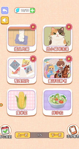 2、这里有很多的小游戏都能选择,跟可爱猫猫趣味的互动;