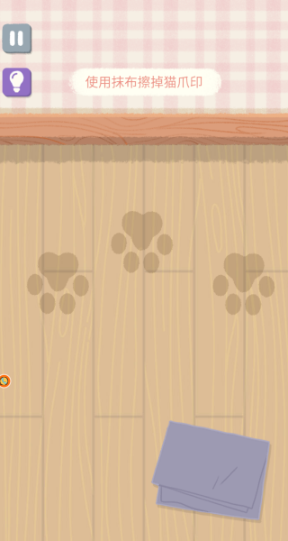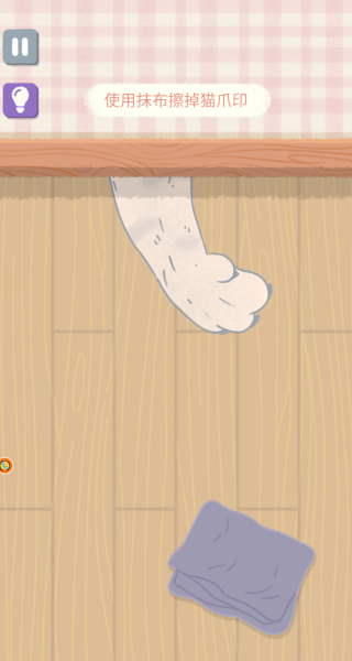 3、选择第一个小游戏,你需要使用抹布擦去猫抓印;