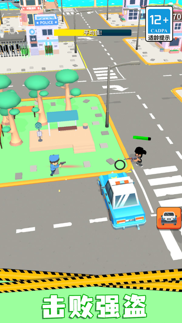 城市护卫队是一款以抓捕罪犯为主题的手游,这款游戏采用低多边形的卡通3D画面制作,在这里玩家将成为一位警察,可以驾驶着警车在这个广阔的城市中自由探索,在接到警报之后,需要驾驶警车进行追击,及时到达现场,通过灵活的走位迅速操控警官击晕歹徒就能成功逮捕。