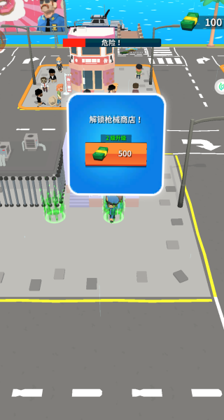 2、操控着角色到一个绿色的方框内,这里可以解锁枪械,但是你没钱。