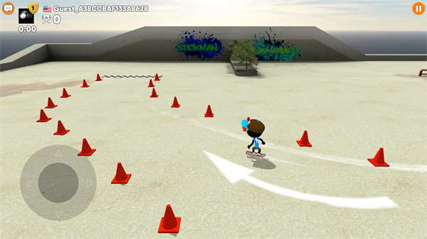2、操控火柴人来一场比赛,脚踩滑板,表演各种高难度的滑板招数;