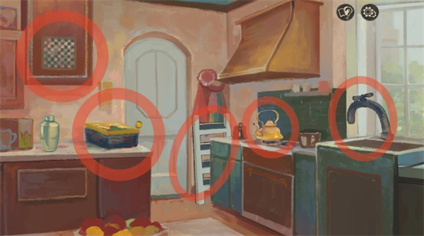 5、之后偶遇奈特,两个选项暂时没区别,进入玩具店后有个控制杯子晃动的小游戏。点开桌子上的盒子拿取里面的火柴,拿走地上的梯子和灶台上的水壶,将梯子放在顶柜底下。点击顶柜上的棋盘完成一笔画小游戏拿取扳手。用扳手修好水龙头,点击物品栏中的水壶打开盖子,用水壶接水盖上盖子放到灶台上,用火柴点燃。
