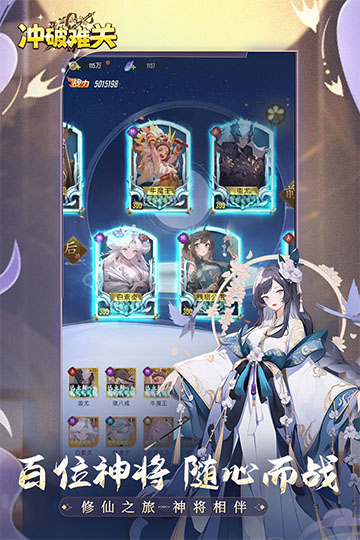冲破难关是一款受欢迎的策略卡牌玩法的手游,这款游戏采用水墨国风画面制作,以经典的西游神话为主题,在这里玩家将化身一位天命之人,可以在仙、魔、妖、佛第二部分不同的阵营中进行选择,根据羁绊和属性等元素搭配出强力的阵容,在回合制机制下与各种各样的敌人对抗。