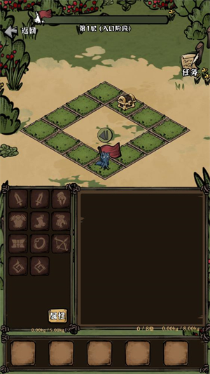 3、进入地图后点击中间的按钮开始探索,角色会自动前进。