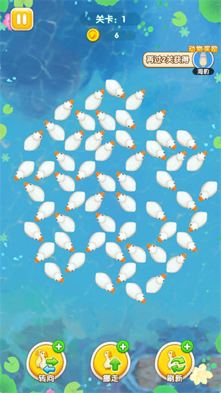 1、进入关卡后先别急着操作鹅群,建议先整体观察场景布局,包括出口位置、大鹅的站位以及它们的朝向。