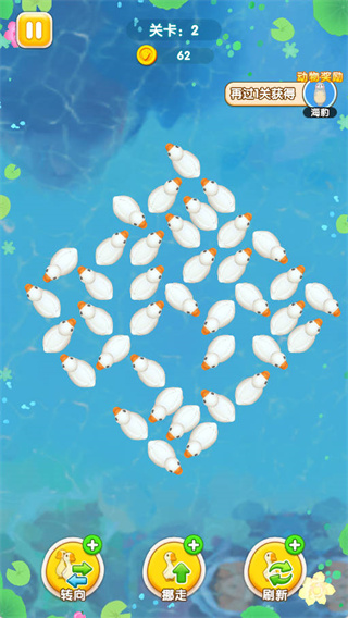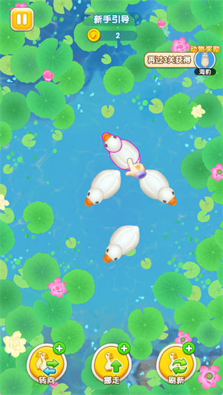 3、随着关卡推进,鹅的数量、移动方向及莲叶布局逐渐复杂,挑战逻辑思维和整体规划能力。