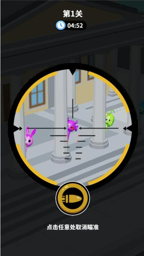找到外星人射击外星人是一款狙击射击玩法的手游,这款游戏采用竖版画面呈现,在这里玩家将成为一位枪手,可以来到充满挑战的关卡中进行观察,使用望远镜等工具仔细的寻找,在找到外星人之后就能通过精准的狙击进行消灭,这些外星人还会伪装成为不同的物品,将外星人全部消灭就能完成闯关。