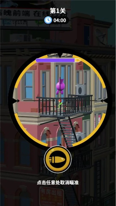 2、玩家需要通过屏幕下侧的瞄准摇杆进行瞄准,并点击射击按钮来击败敌人,同时注意剩余目标的数量。