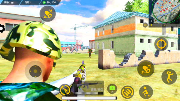 2、基础生存射击,在战场中搜寻武器与资源,击败敌人完成生存目标。