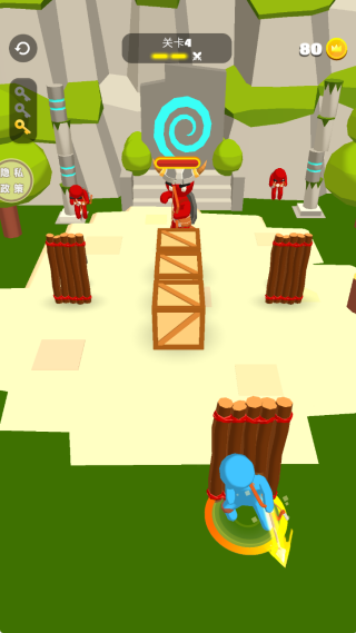 1、在关卡中,玩家操控躲避在障碍物后的角色进行射击敌人,敌人方向即可射击弓箭。