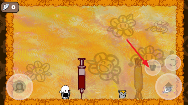 4、继续行走至黄色水桶,点击水桶按钮就可以通过黄色区域的部分了。