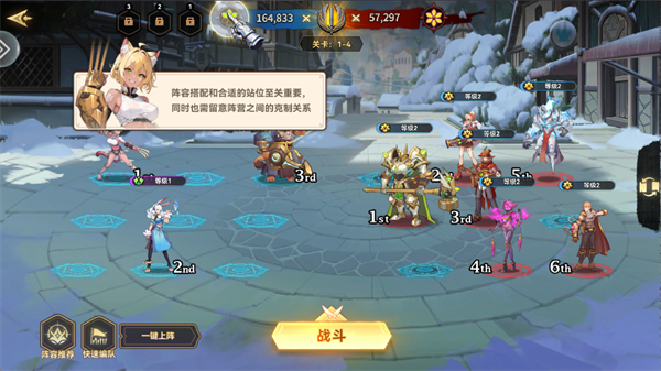 战斗前需合理搭配阵容与站位,注意阵营克制关系,以提升战斗胜率。
