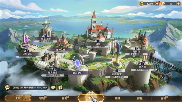 主城包含信念之所、灵力工坊、竞技场等功能,需达成对应关卡或等级条件解锁。