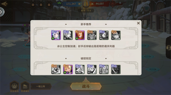 游戏内会拥有推荐阵容板块可以查看,新手推荐“冰公主+射手”组合,冰公主主控加速,射手后排输出,是前期通关的利器。