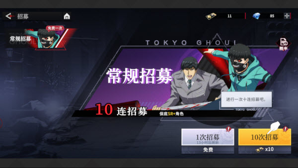 4、当资源积累到一定数量后,可进入招募系统获取心仪角色。