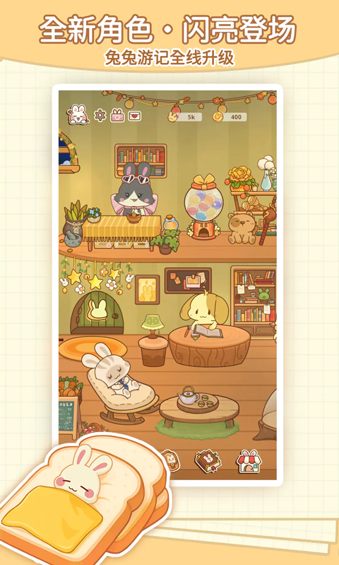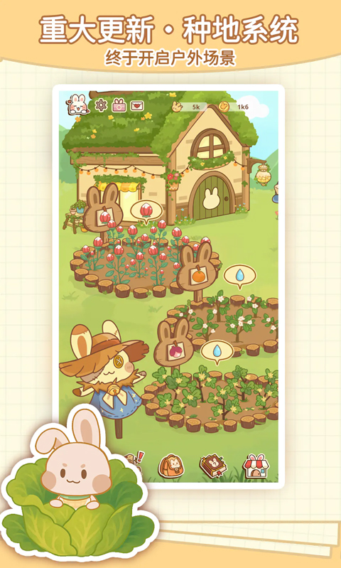 1、游戏画风可爱,采用可爱的兔子形象,提供温馨治愈的氛围。