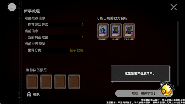 4、进入世界后,左上角可查看世界信息与当前难度。点击【编辑队伍】配置植物阵容,随后点击【启动宇宙模拟器】正式开始挑战。