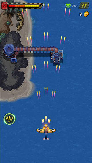 2、玩家进入关卡后,通过手指拖动战机,即可进行移动,并开始自动射击。