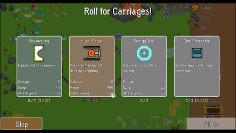 购买三件同类型车厢即可合并升阶,从1级狙击炮到顶级电磁炮无限进阶,每次升级带来质变火力,但资源消耗指数增长考验长远规划。