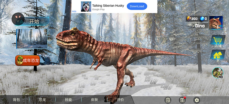 1、点击开始进入食肉牛龙模拟器游戏内,这里我们可以看到诸多内容。