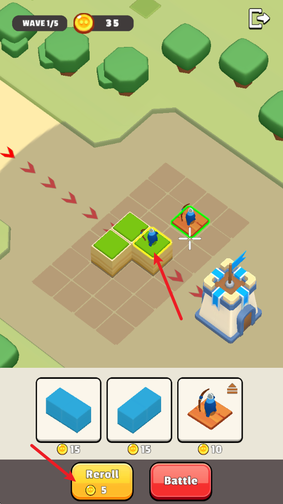 2、自由放置方块,打造你想要的城堡。更高的城墙、更宽的平台或更巧妙的布局都能改变战局。