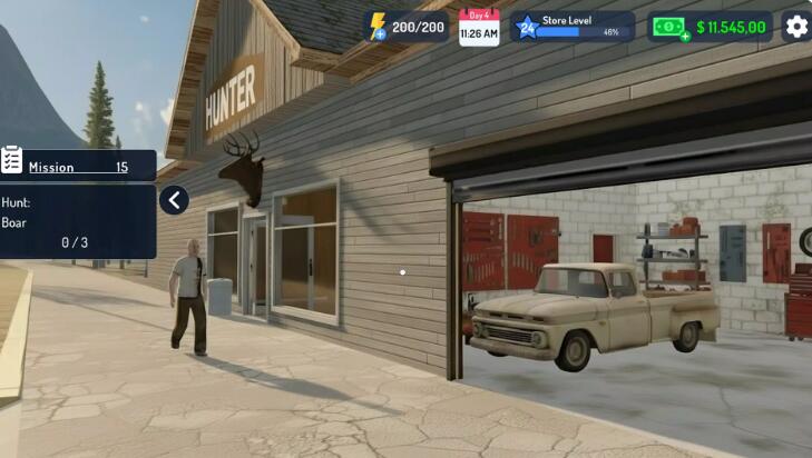 狩猎商店模拟器是结合了射击狩猎和店铺经营玩法的一款手游,在这款游戏中玩家将化身为一位猎人,在装备上各种武器和工具之后,就能驾驶着越野车前往荒野中探索,发现动物的踪迹之后,就能尝试布置陷阱或者使用武器进行射击,将捕获到的猎物放置到店铺中出售,就能获得收益并购买更多的升级设施。