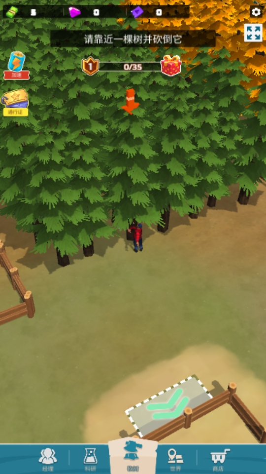 2、靠近树木即可开始砍伐,将获取到的原木资源带回工厂进行后续加工。