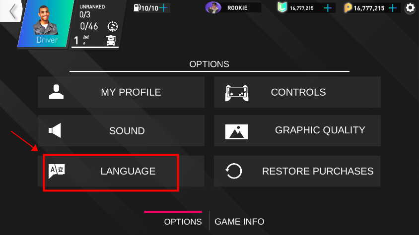3、进入主界面后可以看到账号内拥有大量金币,如果发现语言不是中文,可以点击右上角的设置按钮。
