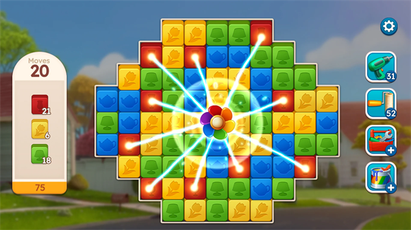 4. 以更少的动作完成匹配,将获得更高的奖励加成,加速家园建设进程。